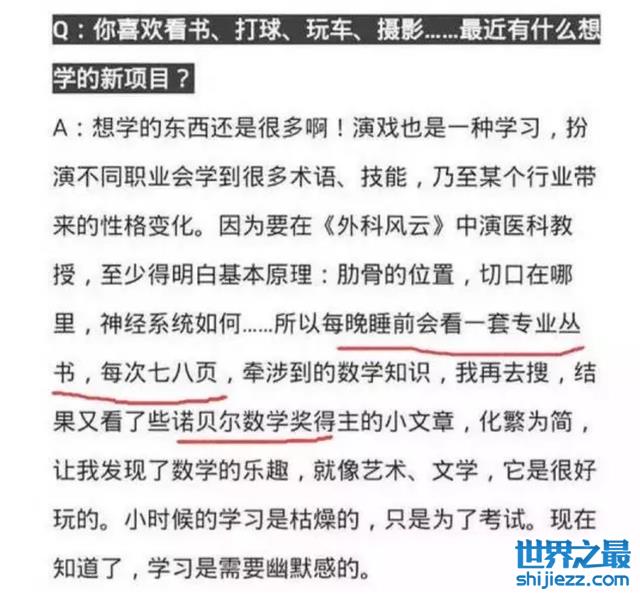 采访当中还说过自己会看“诺贝尔数学奖”得主的文章,然后诺贝尔并没有数学奖。