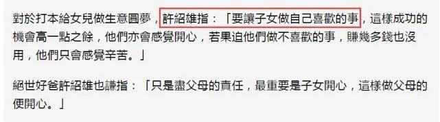 许绍雄表示,要让子女做自己喜欢的事,最重要的是子女开心。