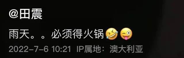 当天,田震跑去吃了一顿火锅,还配文称“雨天,必须得火锅”,虽然是素颜出镜,但她面色红润,看起来状态挺不错的。