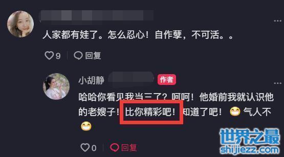 对于网友说她是小三,“小胡静”也给出了解释,说向佐婚前的时候,她就和向佐认识了,并且否认当三,自夸生活非常精彩,怒怼黑粉:气人不?