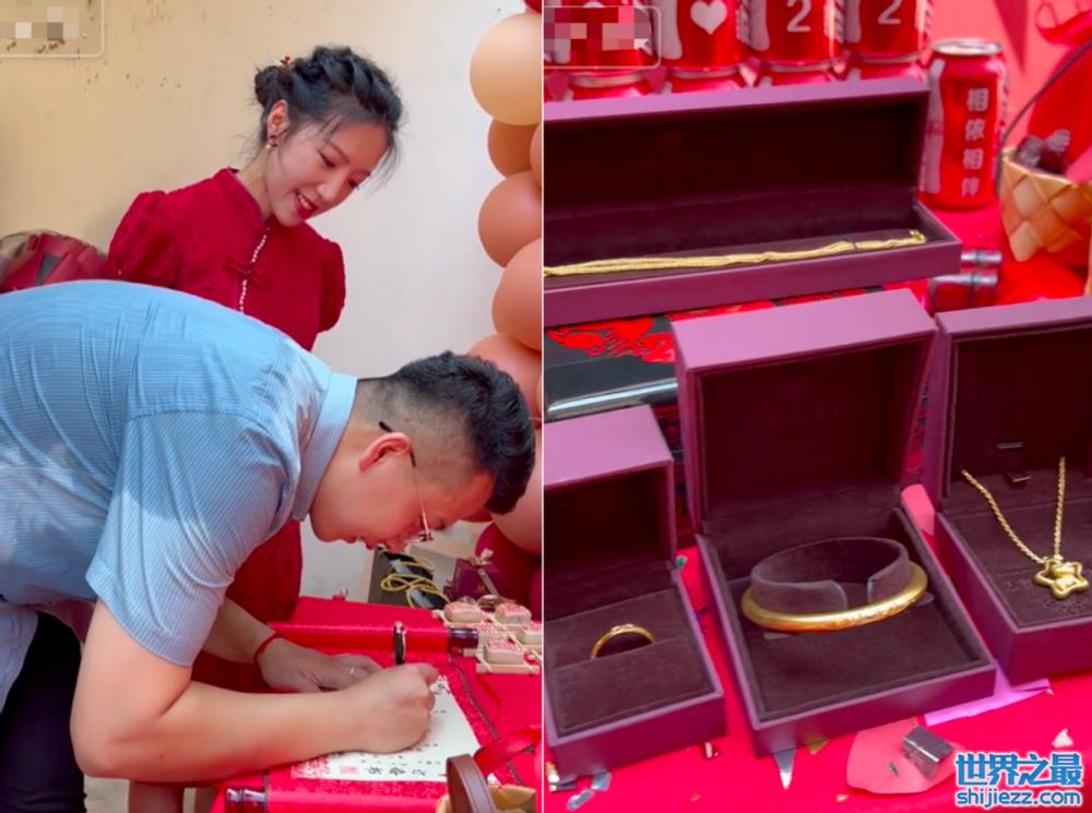 除外,聘礼五金也没少,桌子上摆满了金项链、戒指、手镯等首饰,款式都很简约大气,非常符合麦小登的性格和气质。夏日炎炎,男方忙前忙后上衣已经被汗水彻底打湿,两人在订婚契约上签名,许下相守一生的承诺。