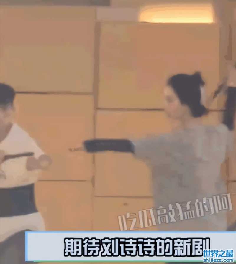 刘诗诗貌似很喜欢这套休闲装扮,在最近流出的刘诗诗新剧路透中,刘诗诗也是身穿这件宽松装扮,在一旁为之后的舞剑戏在练习做准备。只见刘诗诗一手舞着剑,脚上还在麻利地做着动作,整套动作很是流利顺畅,看来这次刘诗诗饰演的角色是个女侠。