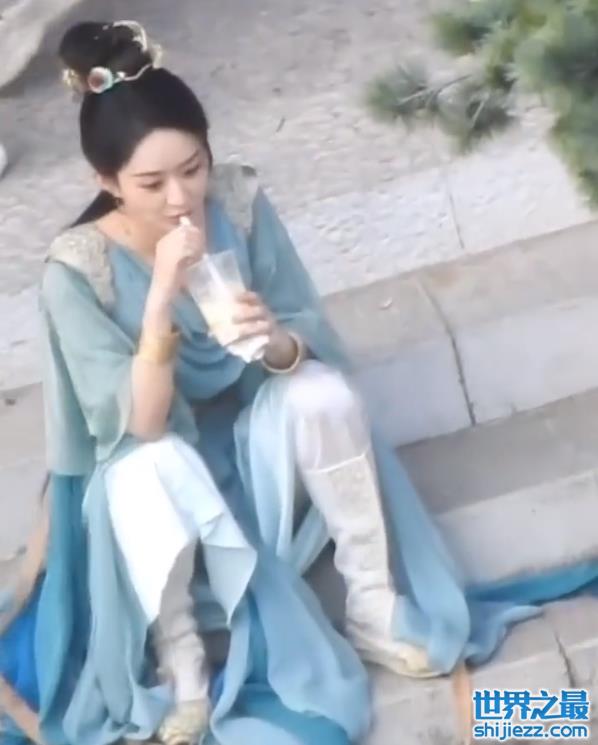 紧接着赵丽颖又坐在阶梯上开始喝起了奶茶,圈内赵丽颖对奶茶的爱也是被认证过的狂热。即使在拍戏间隙,赵丽颖也忍不住坐下狂吸几口奶茶,双腿叉开坐姿豪迈,很是悠然惬意。