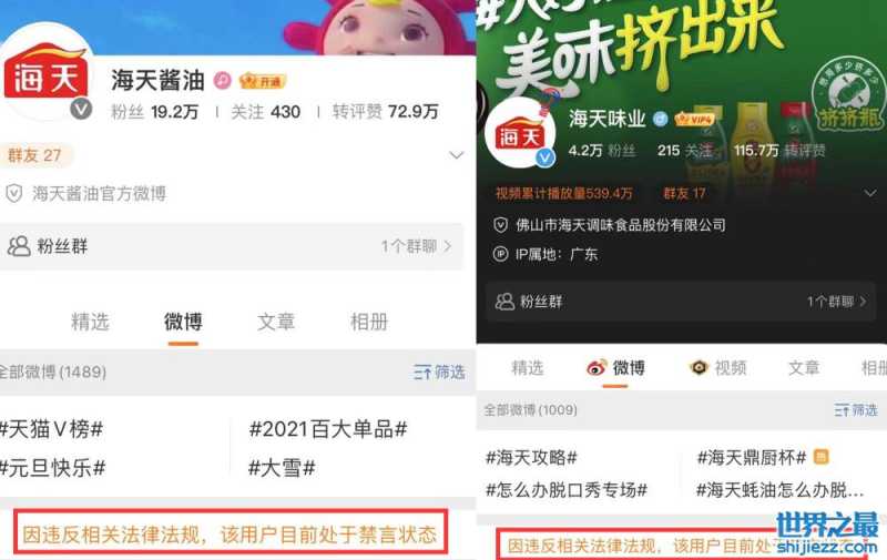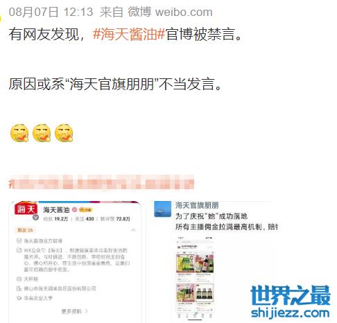 近日,有网友发现,海天酱油及海天味业的官方微博账号被禁言,很多网友纷纷猜测其中原因,了解整件事情的网友透露,两个账号之所以被禁言,是因为旗下的员工朋朋曾发表不当言论。