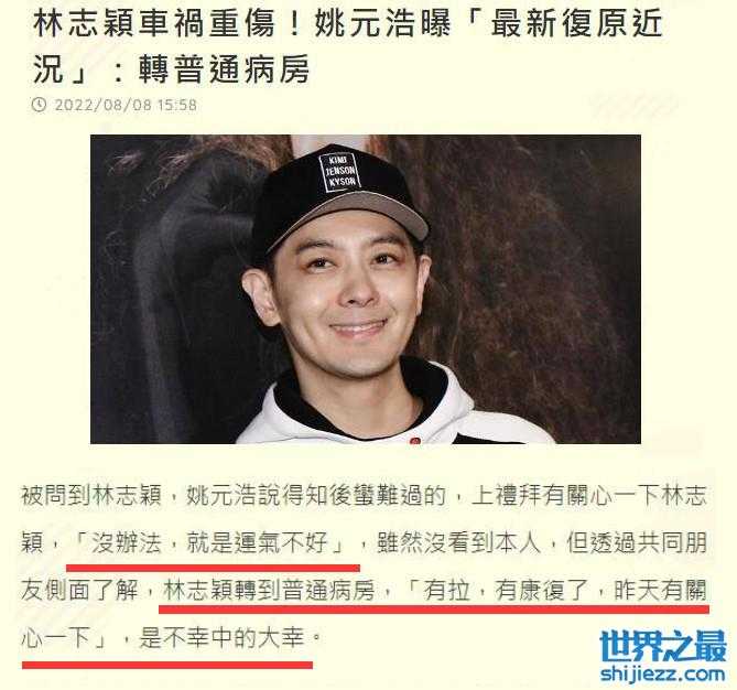 不过对于其亲人与粉丝而言,林志颖当下能够平安无事已经万幸,8月8日,林志颖的好友姚元浩在出席活动时透露,林志颖的病情已经得到很大好转,当下已经转到普通病房继续休养。