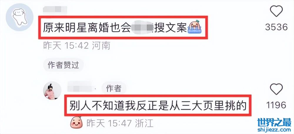 这位网友还表示,自己就是从网上三大页里挑的,另外还点赞网友留言“原来明星离婚也会搜文案。”为了证实该网友所言不假,也确实搜到了相同的文案。