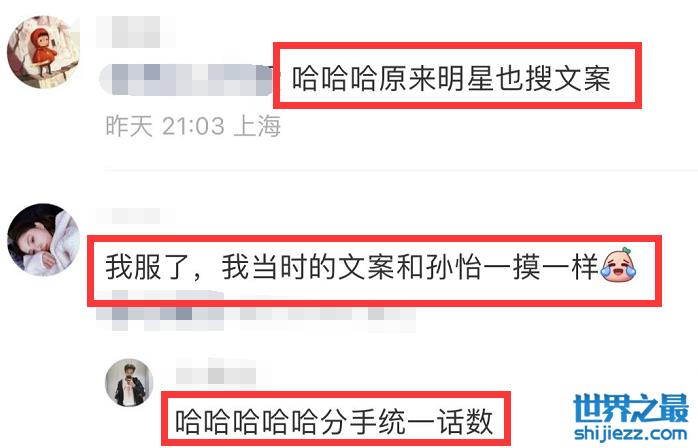 也有不少网友表示自己分手的时候恰好用的也是同款文案,更有网友说“给朋友搜的分手文案朋友没用,没想到被孙怡董子健用了”,由此来看,孙怡和董子健大概率也是图省事直接在网上搜索了分手文案,为此有网友质疑两位明星的经纪团队为何不好好把关,起码写出一些有新意的新词。