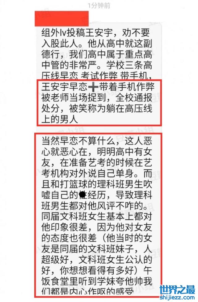 目前这位女子只曝光了这两张聊天记录,所以无法证实说的就是真的,不过因为此前王安宇多次被爆出过私生活混乱,高中的时候就早恋,还被老师发现,爆料者还晒出王安宇高中的照片证实,还有网友爆料说王安宇私下给美女要照片,所以,又让这件事多了几分真实性。