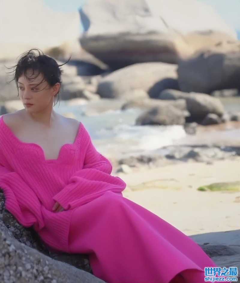 这件玫红色的毛衣裙可以说是这几套造型中最美的一个,只见孙俪躺坐在礁石上面,风吹乱她一头短发,有一种凌乱美。玫红色的裙子是大开领设计,露出丰腴圆润的肩部,看起来也是富有美感,十分优雅。