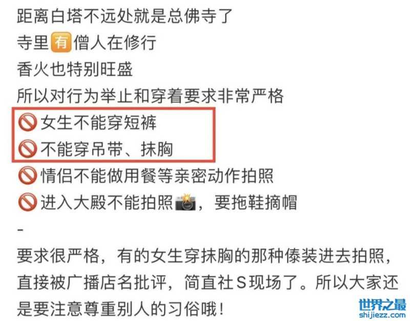但事实上,在云南的总佛寺还是有着明确的要求,女生不能穿短裤,吊带和抹胸进入拍照。
