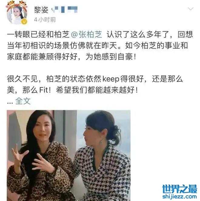 黎姿曾说和张柏芝在各方面都挺像的,她们会经常约着一起喝茶聊天,好似一对普通闺蜜般亲密。之前两人就同框拍了小视频,分享了多年友情的小细节,还上演了美女互夸的可爱环节。