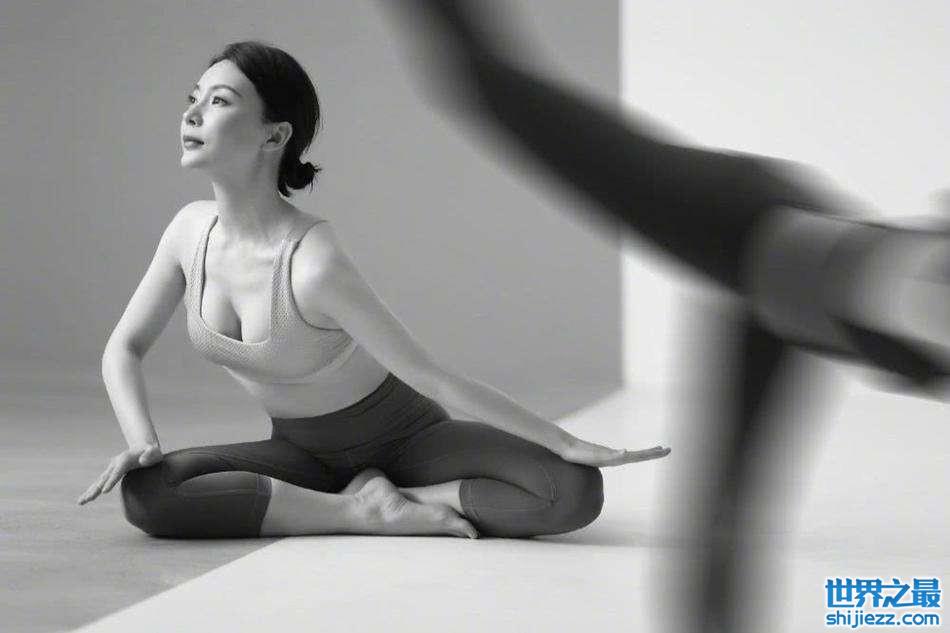 45岁陈数躺地上练瑜伽,穿运动内衣秀小蛮腰,腾空拱起上半身功力强 ...