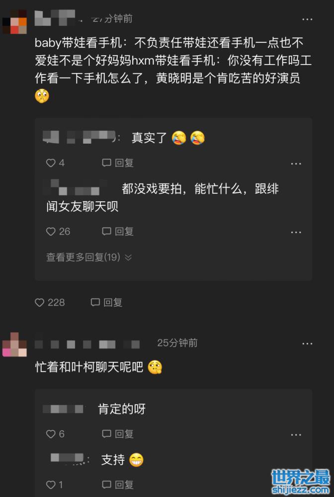 网友们看到这一幕之后也是引起了争议,因为黄晓明带娃的时候全程低头玩手机,但在视频中只说他对小海绵的爱并没有少,而此前baby带娃的时候看手机却说baby带娃不负责任,针对这一问题评论区也是争论起来。