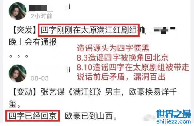 此外,易烊千玺的粉丝也拿出证据重锤造谣者,其中指出爆料者前后说法不一致,此前在8月3日,爆料者说易烊千玺被换了角色,已经返回北京,而代替易烊千玺的则是欧豪,而在8月10日又说易烊千玺在太原剧组被带走,前后说法矛盾,其中真假着实不难分辨。