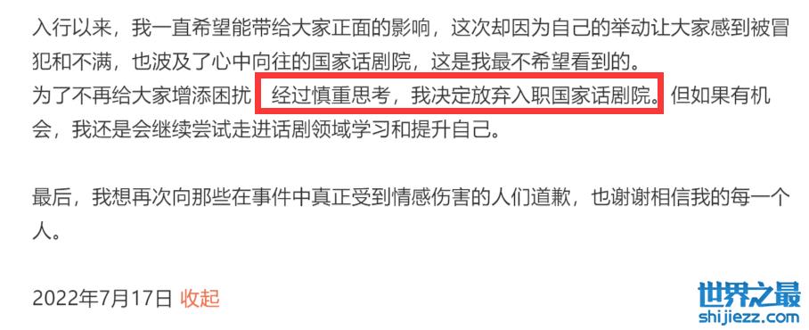 至于有网友提出自己并未收到第三轮面试通知的质疑,国家话剧院也给出相应的解释,表示每轮面试入围者都会由院方予以通知,未入围者不再另行通知,简而言之,只有入围下一轮考试者才能收到面试通知。
