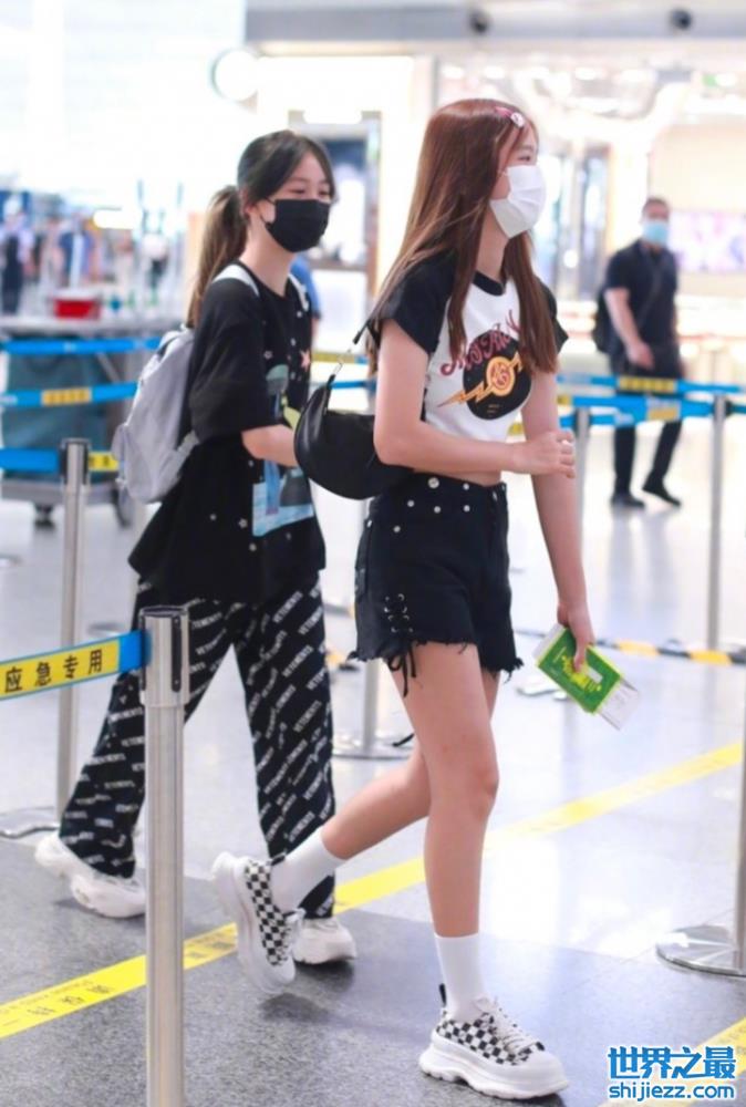张思捷和考拉在高清的镜头下依旧非常好看,两姐妹的风格完全不同。考拉穿着一身黑衣黑裤,头发染成了绿色,看起来有点酷。而张思捷的头发则是黄色,穿着露脐上衣搭配超短裤,露出一双大长腿,14岁的张思捷已经出落得亭亭玉立了。