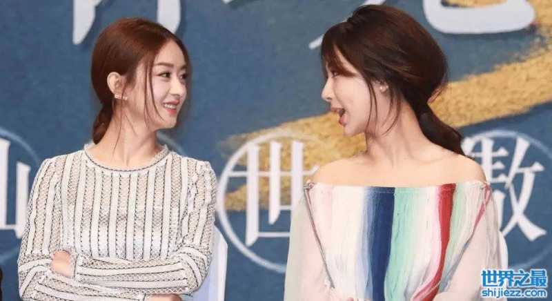 不只是和赵丽颖同框显头大,杨紫和其他女明星同框也是一样显头大。对比和伤害同时存在。