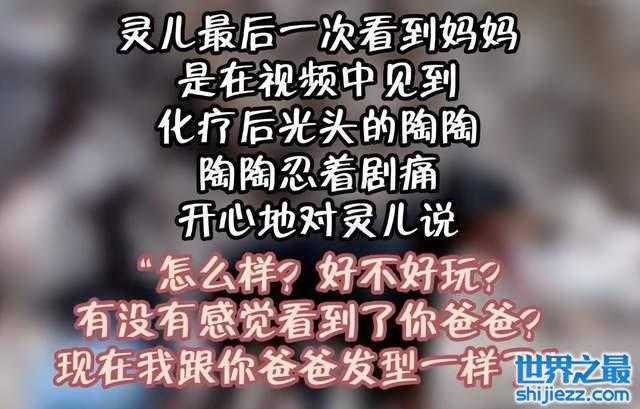 灵儿最后一次见到母亲陶红的时候是通过视频通话,当时的陶红经过化疗已经掉光了头发,不过她忍着疼痛哄灵儿开心,说自己现在是不是和乐嘉一样了。从这些细细碎碎的文字中我们可以看到陶红对女儿的疼爱,以及陶红本人的乐观坚强。