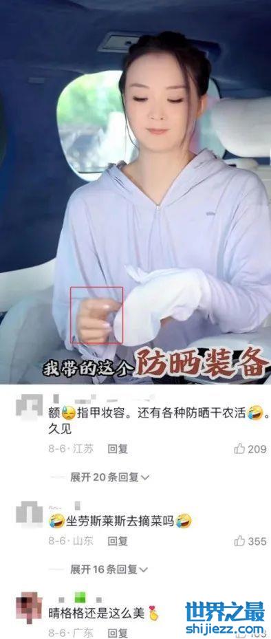 网友们都忍不住吐槽:感觉太假了,摘个菜都要戴手套,真的是十指不沾阳春。