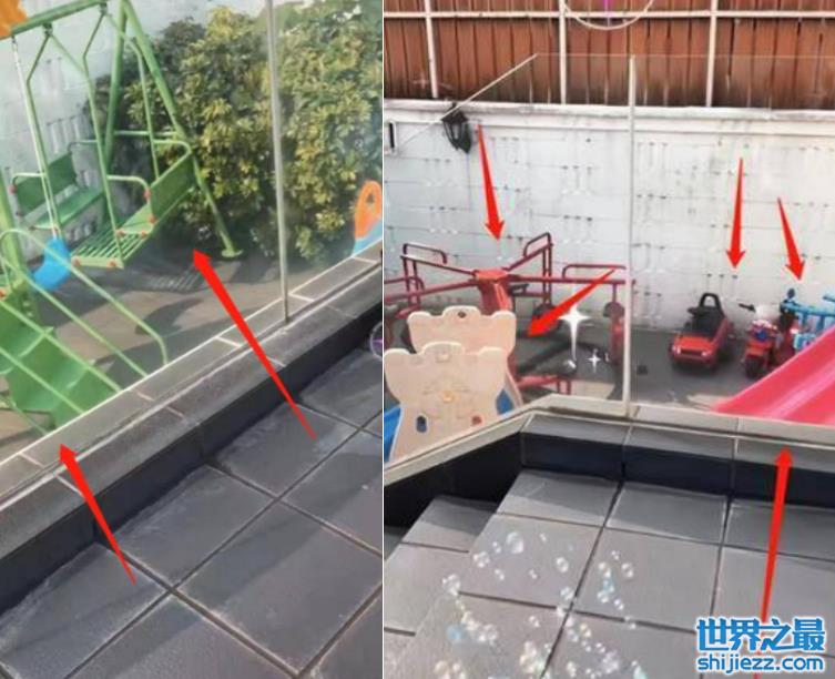 豪宅的后院里摆满了各种各样的儿童大型玩具,看起来就像是一个简易版的儿童公园,不过张柏芝的家看起来似乎已经有了一段历史,墙壁上的木板子都已经腐旧发黑,虽然位于豪宅区,但看起来却有些陈旧。