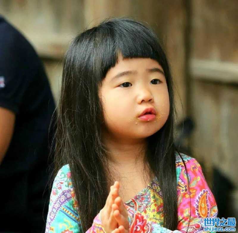 从照片来看,李咏女儿法图麦小时候相貌平平,牙齿是有点龅牙。发型感觉也不是适合。