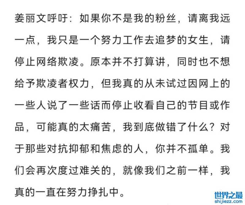 除了感情受挫,她还曾被网暴,面对别人的不理解,她忍不住呼吁大家,不爱请离开,不要对着一个热爱工作的女生进行网络暴力!