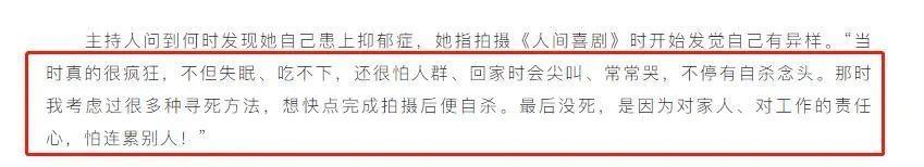 不过在她27岁的这一年,感情和生活打了她大大的一巴掌。她父亲公司因经营不善欠下了一屁股债,还被告上了法庭,父母因为这些问题而离婚,原本幸福的一家瞬间支离破碎。除了要帮父亲还债,还要承担起家里3套房子的房贷。在经济压力这么大的情况下,她的圈外男友还要离她而去,跟她分手。生活和感情的双重打击让她患上了抑郁症。