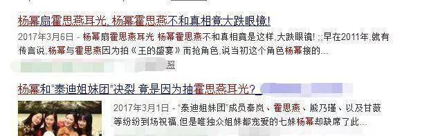 传闻杨幂与泰迪姐妹团闹僵,是因为霍思燕在其中抢走了《王的盛宴》中的一个角色,当初还传出两人互扇耳光的通稿;也有人说是因为她原本在姐妹团就是个小透明,后来爆火引起关系微妙的变化,因此也就自然而然淡出了。