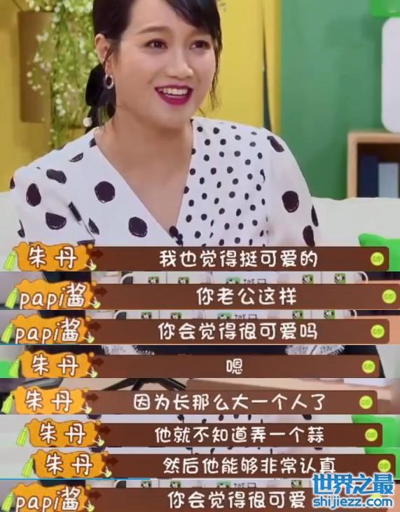 朱丹对周一围的霸道、不做家务,都是无限包容的姿态。她甚至觉得如果周一围到老都不会做饭、做家务,那也很可爱:“他长那么大一个人,还不知道怎么处理蒜,那画面不是很可爱吗。”papi酱无话可说,只能暗讽:你心态蛮好的,能长寿。