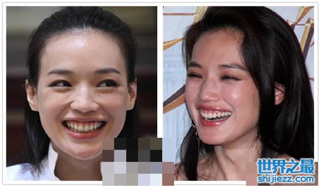 舒淇也是因为牙齿短小,笑起来嘴部空间又大导致牙龈外露明显。但上嘴唇较厚的原因只要不大笑,对颜值影响还是没那么大的。