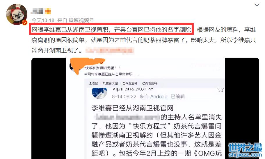 网传李维嘉已正式离职,湖南卫视官网将其名字移除