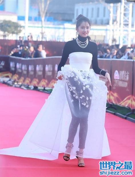 也正是因为长期外八走路的影响,所以关晓彤穿礼服走红毯的时候,两只脚都会不自觉地把礼服稍微撑开一些。最出圈的“灾难造型”还得是下图的这身透视纱裙,虽然是逆天大长腿,但却直接暴露了其外八走路的姿势,整体怪异到不行。