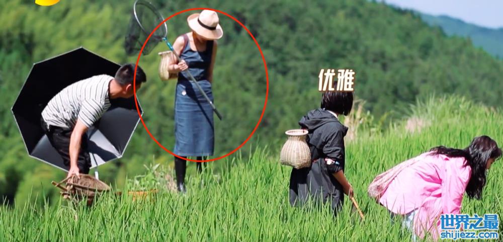殷桃节目中下田捕鱼!背竹篓拿渔网反差大,裙子卷到大腿身材好 ...