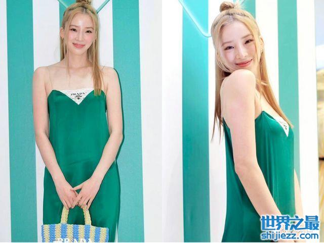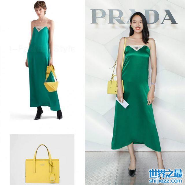 同样在Prada北京秀场现身的张梓琳,一身绿裙非常抢眼。