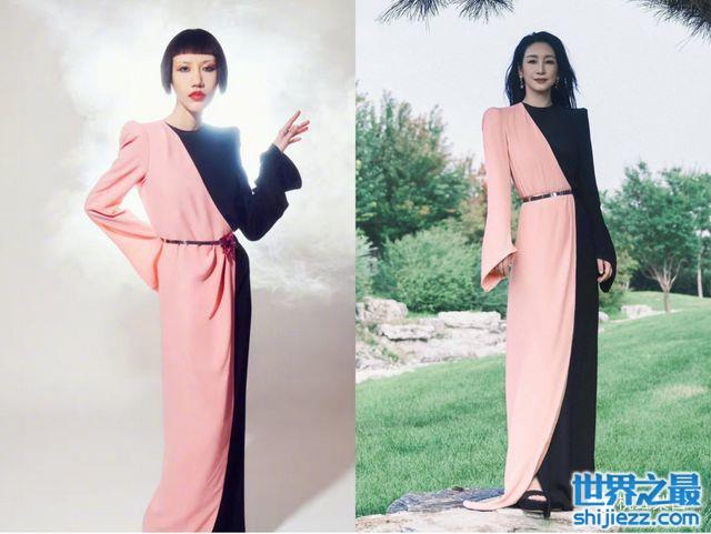 不同于往日的纯色礼服裙路线,这次别出心裁选了一条黑色和粉色不规则撞色款现身,配合慵懒的大卷发,整个人在红毯上看起来十分摇曳生姿。