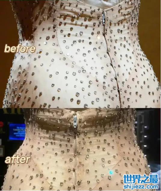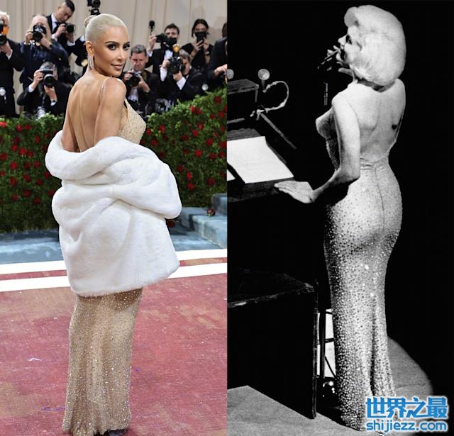 上一个因为红毯礼裙拉链拉不上,还是卡戴珊,她直接引起了国际群嘲。为了在美国纽约的MET GALA慈善舞会上出风头,丰腴的卡戴珊借来了玛丽莲梦露的1962年经典裙子,裙子上光是手工缝制的水晶就多达6000多颗。