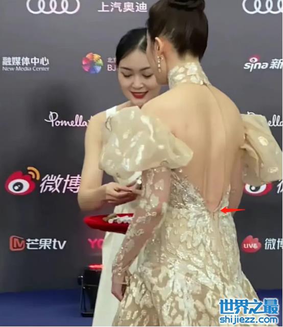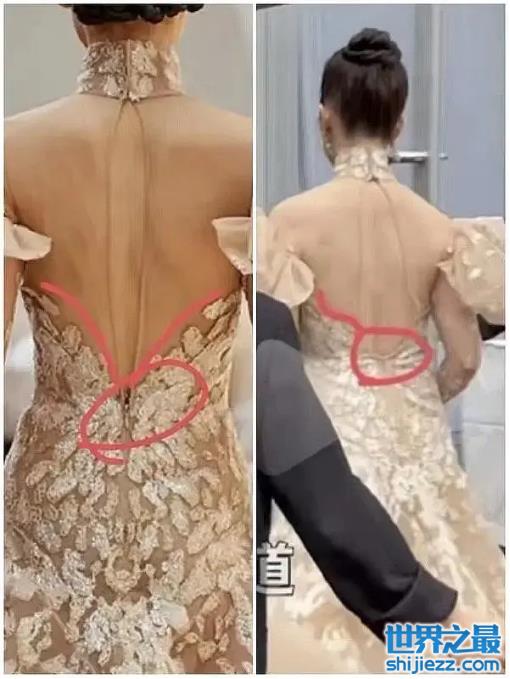 走上红毯,就要接受360°的考验。在其他角度也能清楚看到,刘亦菲的后背拉链根本没拉到底,空了一大截就拉不上去了。