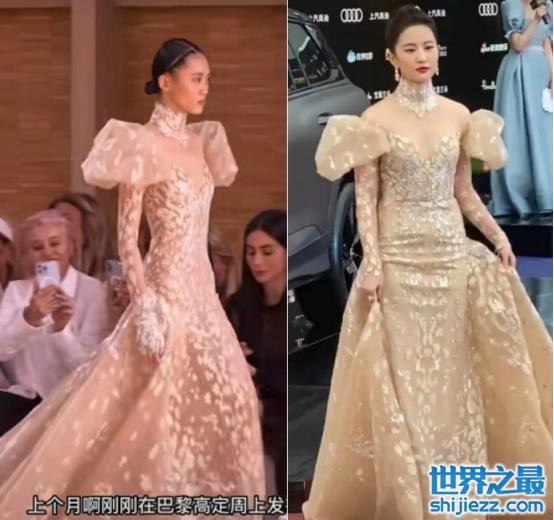 最尴尬的是,刘亦菲一转身被大家发现了新槽点:这背后的拉链是不是没拉上?对比模特图,刘亦菲的后背确实崩开得太明显。
