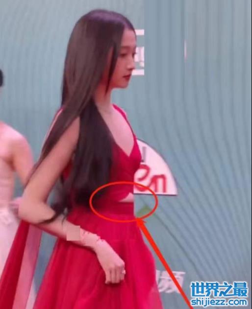 奚梦瑶为了过分追求细腰,她选了不合适自己的露背露腰纱裙,她本来紧实的腰部,反而被小号礼裙挤得赘肉明显。红毯秀腰不成,倒是用力过猛下挤出的赘肉,成了全场亮点。