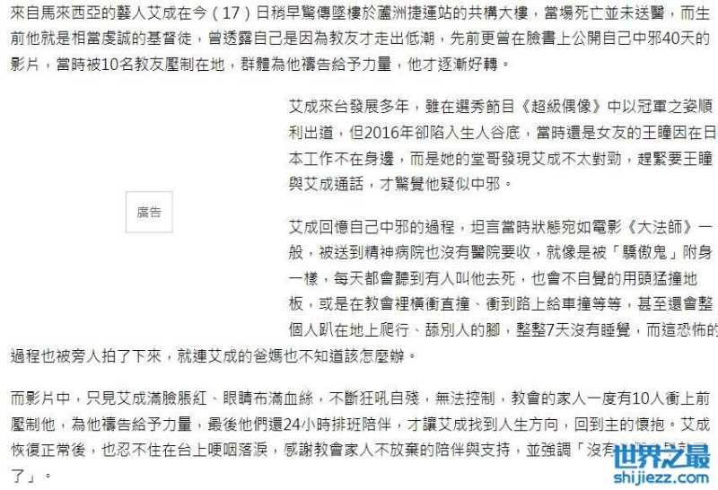 但没有想到,不过短短数年之后,艾成这一次却选择在地铁站楼上结束了自己生命。