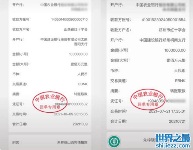 难得的是,朱梓骁有钱之后,也不忘回馈社会,去年河南暴雨,他捐了100万,等到山西受灾,他又捐了100万。
