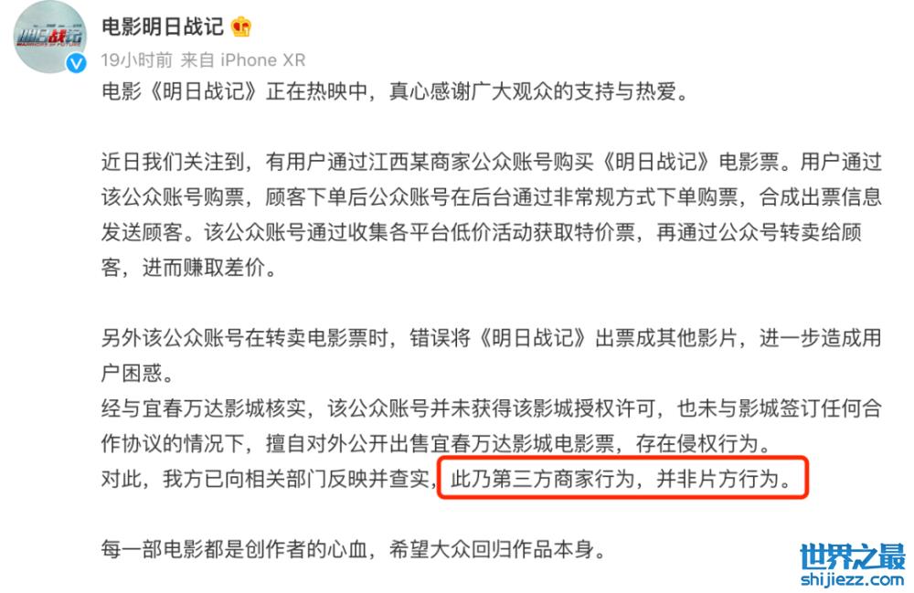 有网友说,自己明明买的是《明日战记》的电影票,但是票根上显示的却是《独行月球》,也就是说:《明日战记》的票房被算给了《独行月球》。