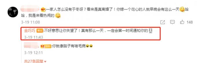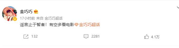 在事情发酵之后,金巧巧也出来亲自辟谣了,表示谣言止于智者,有空还不如多去看看电影。
