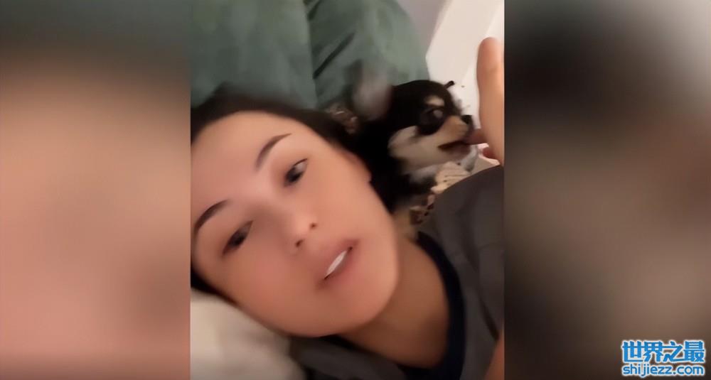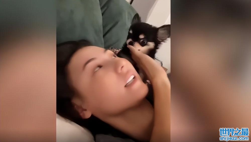 张柏芝躺在床上与吉娃娃小狗互动,她拍摄视频记录下母女温馨的一天。当时的张柏芝正在睡觉,小狗和她互动玩到失控,宠宠狗狗看到妈妈就发狂,不断地想要咬张柏芝,并且期间还咬到她的手指和耳朵。