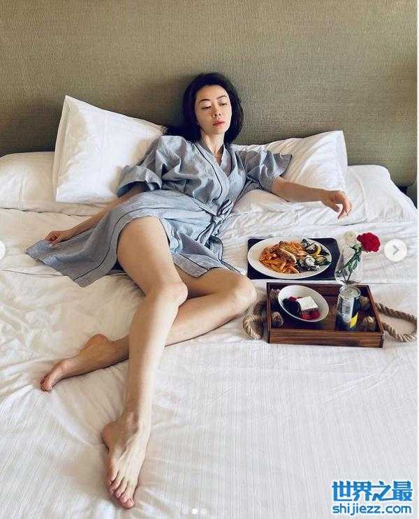 人家隔离不是秀生活,反倒熊黛林则是自己专业工作的理念秀出自己的模特身材。躺在床上穿着浴袍的她与自己的美食午餐幸福合影。