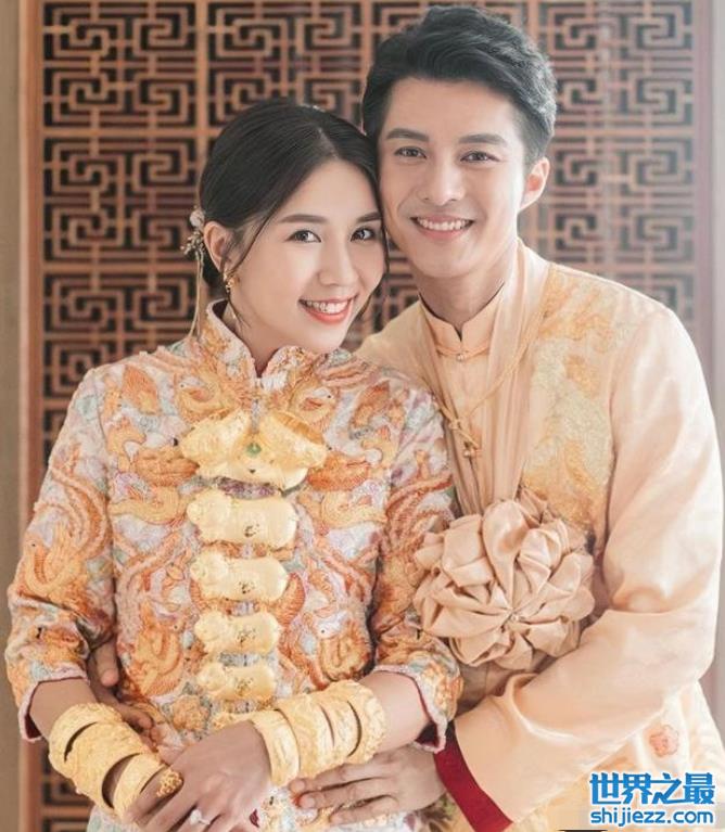 港星黄嘉乐婚礼太豪华!妻子胸前挂6只金猪,身上套满十个大金镯 ...