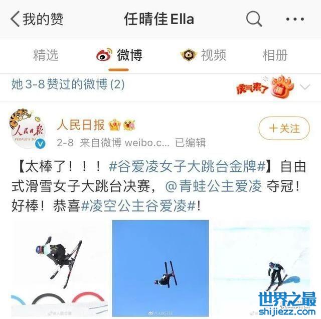 她特别喜欢“青蛙公主”谷爱凌,点赞了很多谷爱凌的内容。
