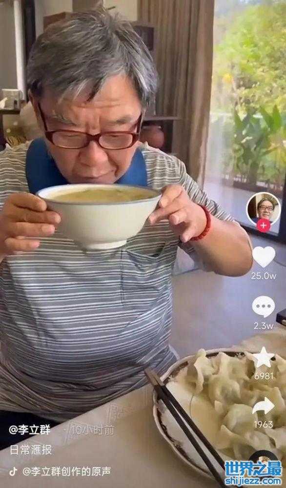 一开始,他正在吃饺子、喝饺子汤,并配文写道“日常汇报”,似乎就是和大家唠唠家常。他一边喝着饺子汤,一边说自己老婆是南方人、台湾人、闽南人,所以擀饺子皮儿一定是他自己来做,这时能隐约听见他妻子在旁边说是自己是福建人。
