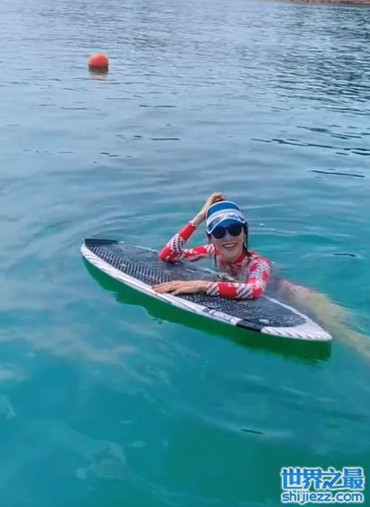 38岁李彩桦冲浪秀长腿,连体泳衣侧面开叉高,落水后素颜十分惊艳 ...