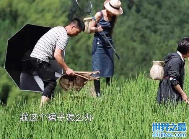 也因为她的这番穿着打扮,被吐槽说一看就是第一次去干活,哪里有穿紧身裙去抓鱼的,不仅碍事还让人挺无语的。